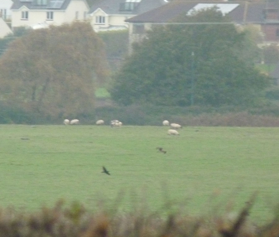 The biggest surprise though was when I pulled over to have a scan over Colyford Marsh, and I picked up ring-tail Harrier being chased by a Crow over the reed bed. Flipping heck!! I scrambled for the scope, and thankfully after a nervous couple of minutes of no sign, it reappeared and showed itself to be a gorgeous juvenile Hen Harrier. Pity it wasn't the rarer species of Harrier, but Hen is rare enough here - only my third ever on patch. I just managed to grab a couple of dreadfully poor record shots before it dropped down out of view behind a hedge, I'm not sure whether it carried on flying north or landed.